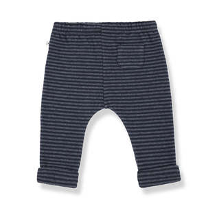Striped jersey baggy pants with a rounded patch pocket on the back and an elasticized waist with drawstring detail. 47% Cotton, 47% Acrylic, 6% Elastane. Machine wash at 30C.
