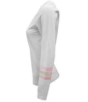 The Designing Hollywood x Madison Maison 3 Stripe Long Sleeve Tee is a luxurious Italian-made shirt featuring a bold three-stripe pattern on the left arm. It is crafted from premium quality cotton with added stretch for enhanced comfort. Type: Clothing.