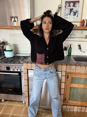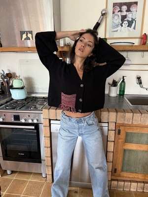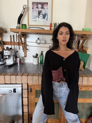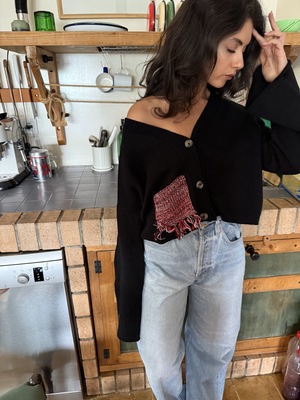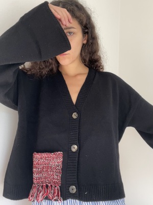 DESCRIPTION The Givh Black Melo Cardi is made from premium merino wool and showcases a unique contrasting patch pocket, adding an elegant touch to its design. *designed in Vancouver, this knitwear is lovingly made by female artisans in Iran DETAILS Button front Contrast pocket COMPOSITION/ CARE 100% Merino wool/ Hand Wash Cold or Dry Clean for best results