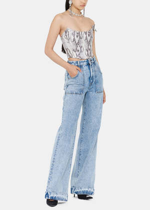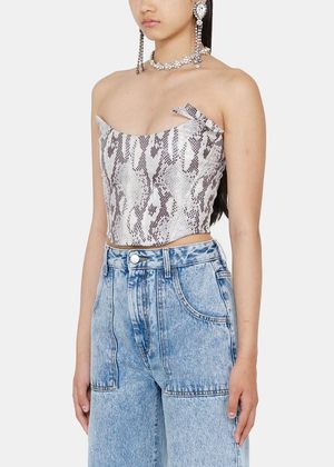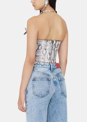Sleeveless bustier in light grey featuring python print throughout. Tonal bow at chest. Concealed zip closure at back. Lined. Lined. Fabric: 100% Polyester. Lining: 65% Viscose, 35% Polyester. Made in Italy.