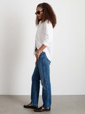 The perfect oversized cotton blouse in all the right proportions. Crafted with the perfect amount of volume and length without being too bulky. Features a front pocket and side slits. - 100% cotton - Runs true to size with an oversized fit - Size small measures 46.25" around the chest and 27" long. Sleeve length measures 31.25" from the neck