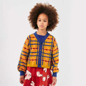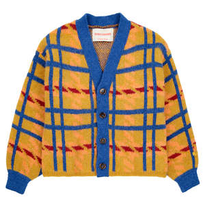 Bobo Choses was created in 2008 to create a friendly clothing brand that could speak to children in their own language. They celebrate being kids stuck inside adults; acting seriously funny and caring for the world and everything that is part of it. Can you imagine a fairy tale in which there is a good wolf who is mistreated by the lambs, a bad prince, a beautiful witch, or a righteous pirate? "Once Upon a Time" is a collection encouraging children to reinvent the classic Brothers Grimm fairy tales, mixing the characters and settings to generate new stories. - Knit cardigan - All over jacquard knit plaid pattern - Button closure down the front - B.C. logo embroidered on the sleeve - Ribbed knit trim - Long sleeves 50% Acrylic, 29% Polyamide, 19% Merino Wool, 2% Elastane Machine wash at 30C on gentle cycle. Do not tumble dry, or dry clean. B224AC122