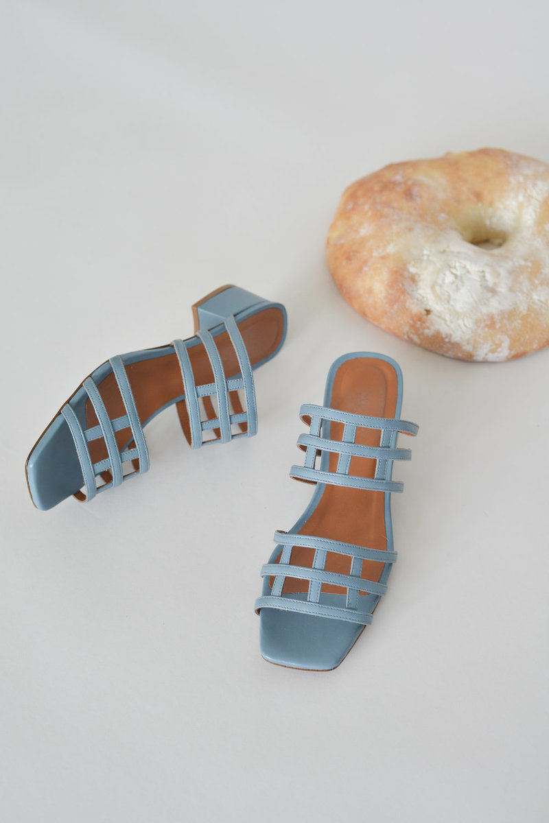 Providing an elegant twist on geometry, these slides easily transition from daytime to evening. These pair beautifully with a clean wardrobe. - 1.6" heel - Italian leather - Made in Bulgaria