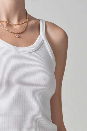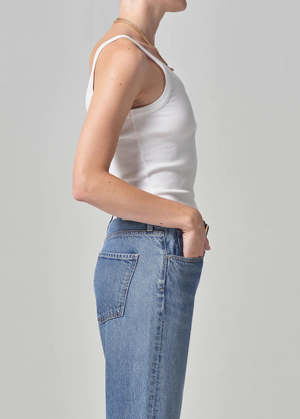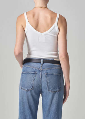 Citizens of Hummanity ribbed Katia tank top in white. An essential staple. With a slim body and a flattering scoop neck, the Katia is that perfect tank that can be worn season after season. 49% organic cotton, 49% tencel lyocell, 2% spandex. Made in USA with imported materials. PIPE AND ROW