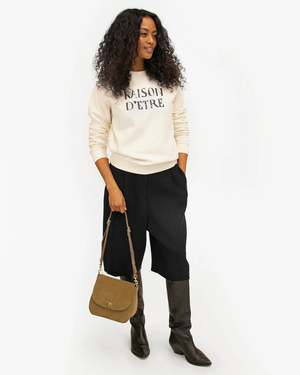 Sweatshirt - - Pronounced ray-zone detra (approximately) - Raison D'etre means the reason for being Pre-shrunk 100% Cotton Fleece Made in Portugal CREAM w/ BLACK