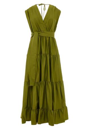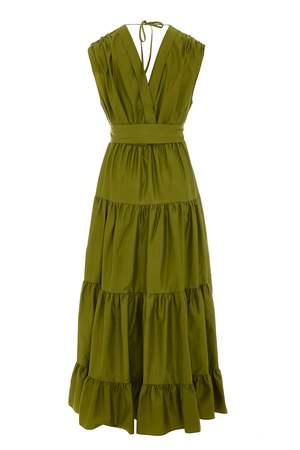 Devotion Twins Faidra Dress in dark lime. Tiered panels create a classic, elegant shape. Perfect for a garden wedding. 100% lightweight cotton sateen.