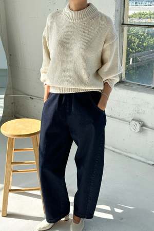 A timeless piece that transcends seasons. Made of mid-weight cotton and high gauge knit, the Zoe Sweater boasts a mock neck with slouchy shoulders and balloon sleeves for a relaxed fit. Ribbed trim adds a classic touch to the neck, cuffs, and hem. Layer the sweater over a cami during cooler moments, or on its own for an airy, elevated yet look. Made in South Korea Sustainability 100% Cotton This garment is made from undyed and unprocessed cotton yarn Sizing info Measurements are approximate and may deviate by up to 1 inch due to variations depending on the colors and batches in the garment washing process. XS/S: Length 21", Chest 21" M/L: Length 21 1/2", Chest 22" Model is 5' 6, 110lbs and wearing a size XS/S