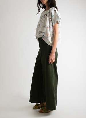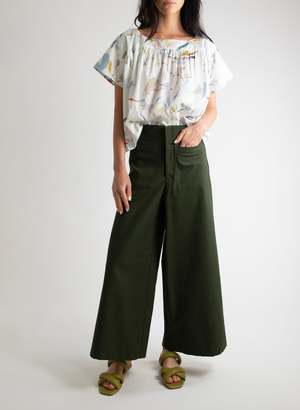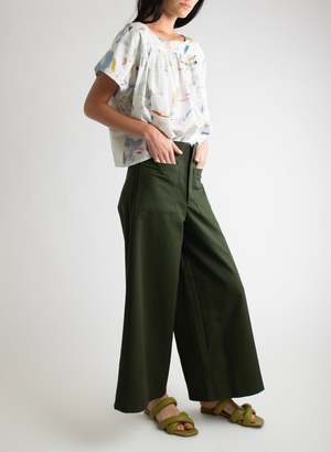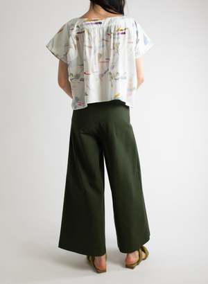 This style features: - High waist fit - Zip front - Front pockets - Wide leg - Fabric content: 100% Cotton - Machine wash cold, hang dry Designed by Meg in Brooklyn, NY. Made by MCM Enterprise in New York.