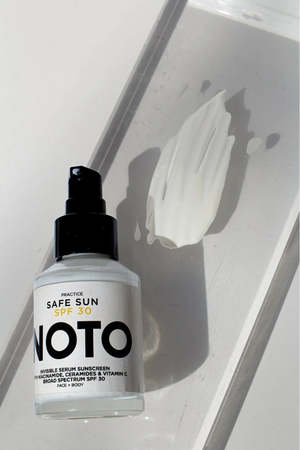 Practice Safe Sun is an SPF 30 invisible serum sunscreen designed to be a daily skincare essential. It goes on completely sheer as a broad-spectrum sunscreen made with vegan ingredients. It applies smooth and invisible, acts as a primer for your skin, and layers well on top of your skincare. The natural scent promotes a relaxing and joyful mood with an addition of cedarwood and may chang oil, giving notes of citrus, wood, and lemongrass. Made with active skincare ingredients including vitamin C, niacinamide, and ceramides to help moisturize, heal, and protect the skin. These ingredients can soften fine lines, improve skin tone, and help minimize pores. Always vegan, cruelty-free, and gender inclusive gender-fluid beauty products and plant-based hydrating skincare and cosmetics. Free of oxybenzone and octinoxate. Sustainability Made in small batches in Los Angeles. Ingredients Chemical, clean SPF made with vegan and natural ingredients, including: - Vitamin C: Protects collagen and increases production, evens skin tone, aids healing, and brightens complexion. - Niacinamides: Essential for healthy skin by hydrating, minimizing pores, regulating oil production, and diminishing fine lines. - Ceramides: Fatty acids that help to lock moisture into your skin and prevent dryness and irritation. - Octocrylene: An organic compound that absorbs UVB radiation to protect against sunburn. - Avobenzone: An organic, oil-soluble ingredient used in sunscreen products to absorb the full spectrum of UVA rays. Active ingredients: Octocrylene 10.0%, Octyl Salicylate 5.0%, Avobenzone 3.0% Inactive ingredients: Water, Butyloctyl Salicylate, Coconut Alkanes, Coco-Caprylate/Caprate, Aloe Barbadensis Leaf Juice, Glycerin, Hydrolyzed Jojoba Esters, Glyceryl Stearate, Glyceryl Stearate Citrate, Sodium Stearoyl Glutamate, Stearic Acid, Lysolecithin, Sclerotium Gum, Xanthan Gum, Pullulan, Niacinamide, Ceramide NP, Ascorbic Acid, Tocopherol, Daucus Carota Sativa (Carrot) Seed Oil, Cinnamomum Camphora (Camphor) Leaf Oil, Juniperus Mexicana Oil, Hydrogenated Castor Oil, Rice Starch, Biosaccharide Gum-1, Bismuth Oxychloride, Ethylhexylglycerin, Phenoxyethanol.
