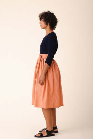 An effortless wrap skirt in a versatile organic cotton muslin. Featuring a generous number of gathers drawn into a wide waistband with long ties to wrap the skirt around the body at the true waist or drop waist. A wrap skirt like this has infinite styling possibilities and is the perfect transitional piece from Spring through Summer, and it has pockets! Designed and produced in Seattle, Washington. Made in USA 100% Organic Cotton Measurements: XS: Waist 22"-28" | Length 28" S: Waist 24"-30" | Length 28.5" M: Waist 26"-32" | Length 29" L: Waist 28"-34" | Length 29.5"