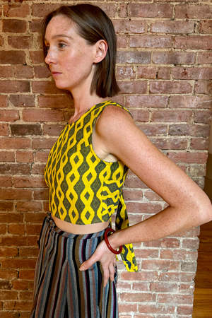 - Backless, crop top - Tie in the back - Pairs perfectly with any high waisted bottom Model 5' 9 | Size S 100% Cotton Jacquard Simply toss them in the washing machine on a cool-to-warm setting with like color. Tumble-dry low and remove promptly to avoid wrinkles. Warm iron if needed. Designed In New York | Handcrafted In India