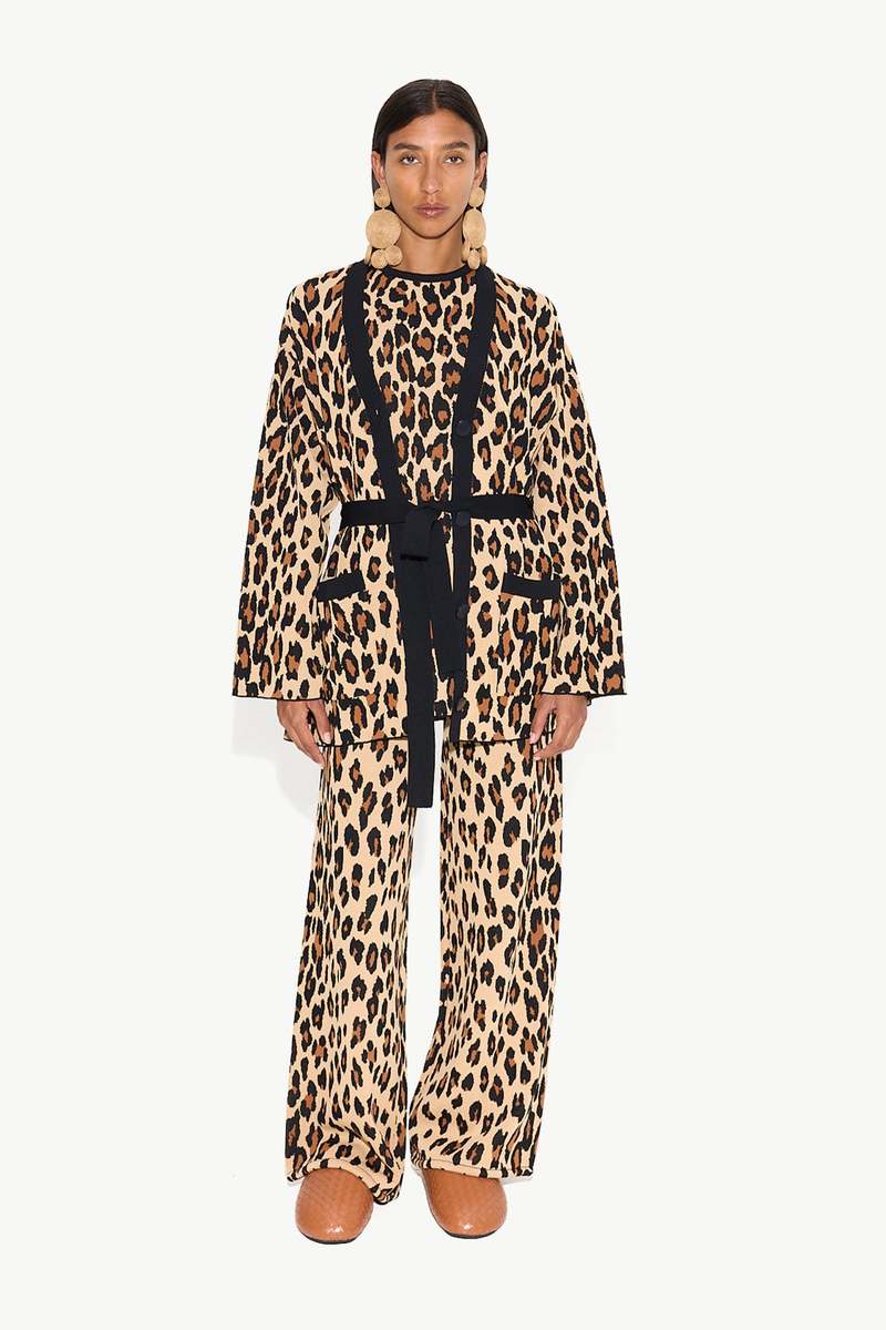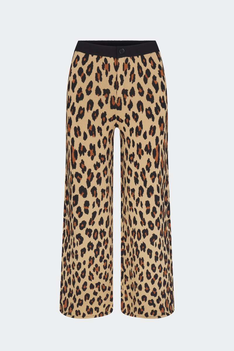 Cheetah Collection - Knits by Simon Miller. Elevated and comfortable knit sets for the working creative. This nylon viscose yarn is compact but lightweight. Wash it and dry, just try it. Relaxed mid-rise, wide-leg trousers with a ribbed elastic waistband, button and front zipper closure, and two back pockets. Embroidered logo detail on right back pocket. Features puffed detail on hem. Details Model: W7061-6079-96388 65% VISCOSE, 35% NYLON MACHINE WASH COLD, DO NOT BLEACH, TUMBLE DRY NORMAL, IRON LOW HEAT Inseam: 31 inches Sizing Model is 5'7 and wears a size S. Google product category Apparel & Accessories > Clothing > Pants Gender female Age group adult Condition new Custom product false Custom label 0 Simon Miller Jabber Pant in Leopard Custom label 1 Simon Miller Jabber Pant Custom label 2 Simon Miller Pants Custom label 3 Simon Miller Ready To Wear Custom label 4 Knits by Simon Miller Google product category 204