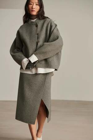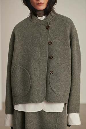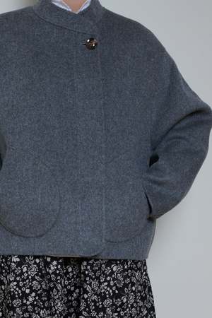 Wool coat from French brand Soeur Loose, wide cut with front buttons and front patch pockets Asymmetric button closure and stand up collar 80% WOOL, 20% POLYAMIDE