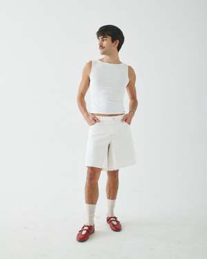 This is the perfect boatneck tank for any outfit. Wear it to work or play; this shirt is soft and flatters all the right places. DETAILS + FIT - 100% combed cotton (deadstock fabric) - Fits true to size with a snug fit