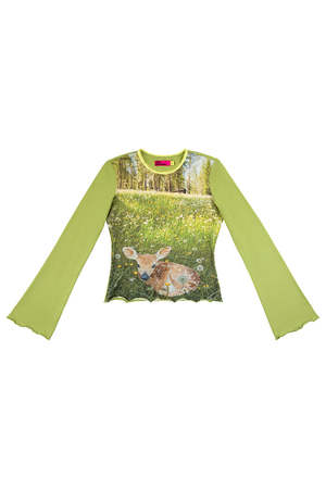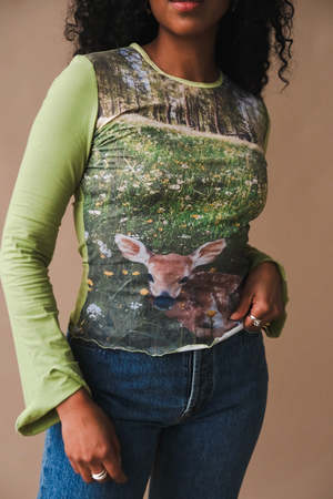 Tyler Mcgillivary Fawn printed top in green. TMFW24-FLS PIPE AND ROW