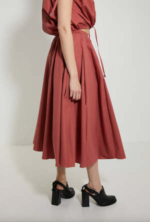 Cotton Poplin Pleated Circle Skirt - Canyon