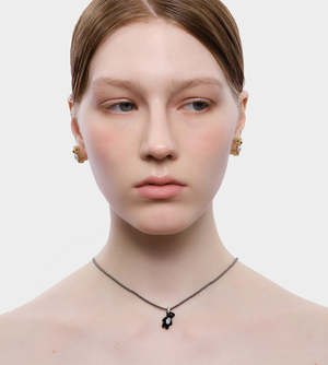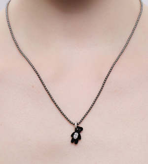A all-black mini teddy bear necklace with inset gemstones. Carefully selected Austrian-imported pearls, boasting a bright luster and perfectly round standards. Finely polished natural shells, displaying a warm pearl-like luster, and a gentle, high-pressure finish. 3D printed resin plush, easier to clean. Vendor style: 24422BLK00 NN Materials: 925 silver plated with 18K gold, 5A-grade cubic zirconia, 3D printed resin plush, enamel, Pearl. Dimensions: Chain Length 40+10cm, Pendant Length 1.6cm, Width 0.9cm Imported.