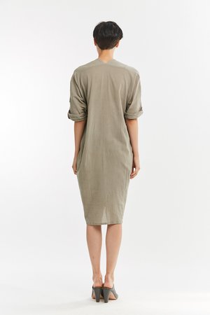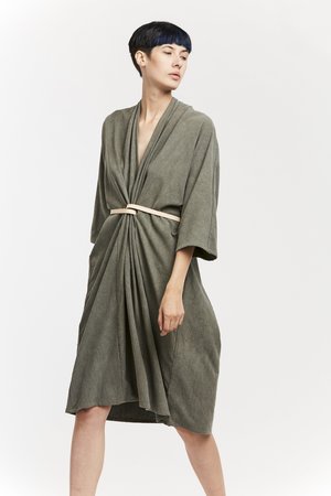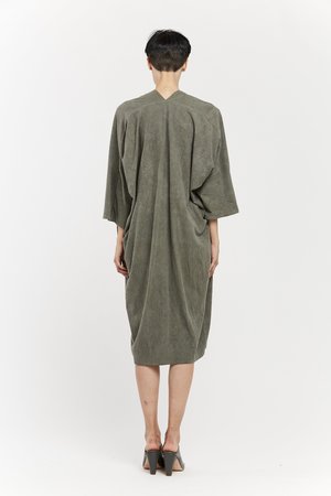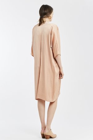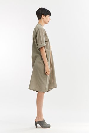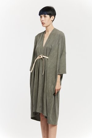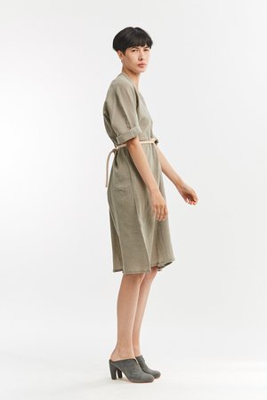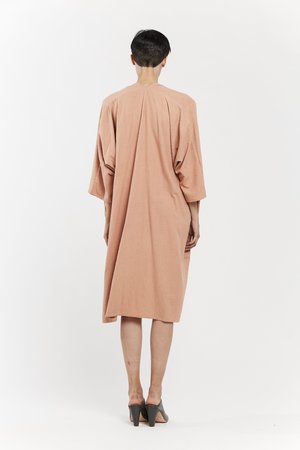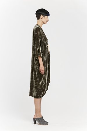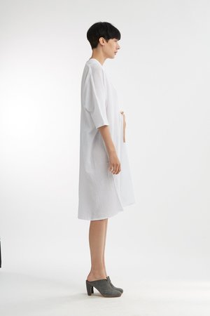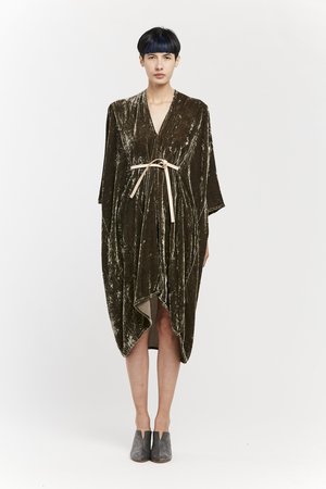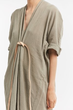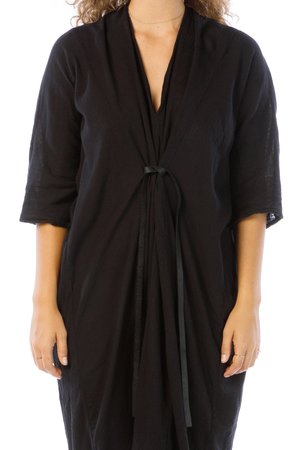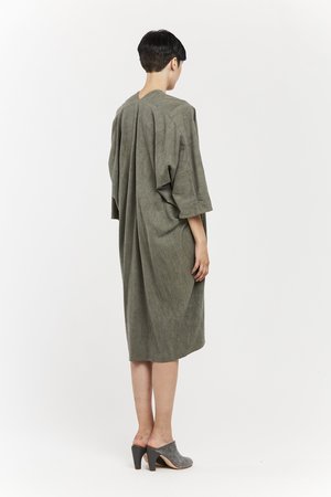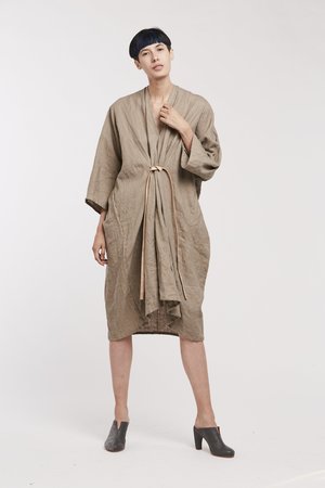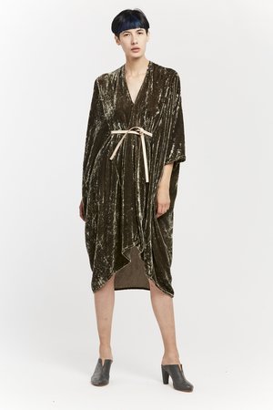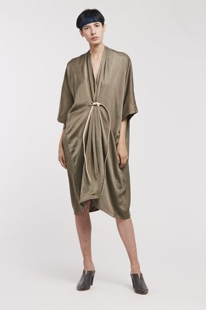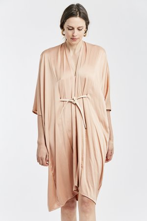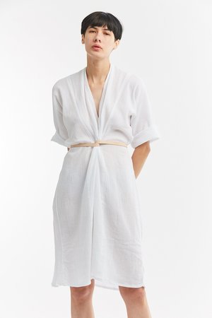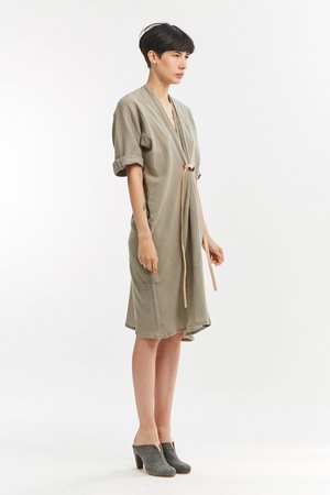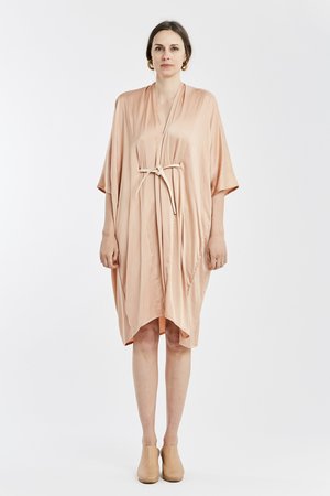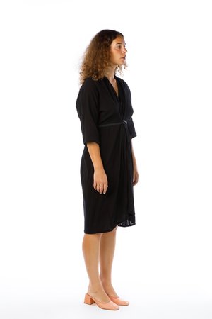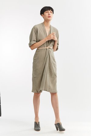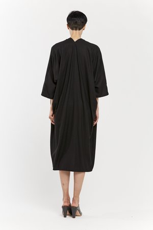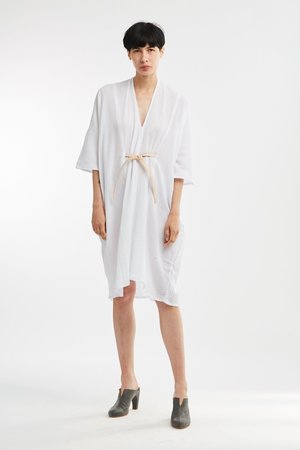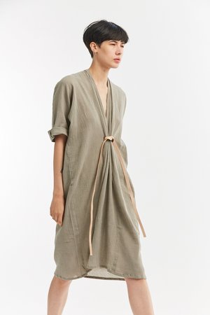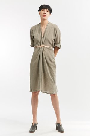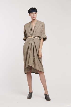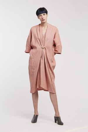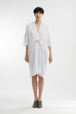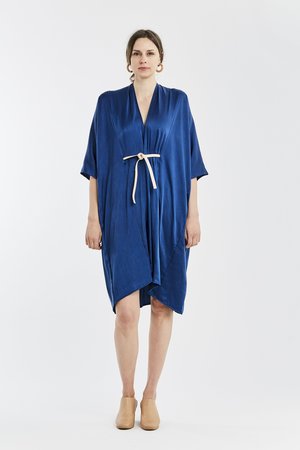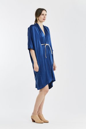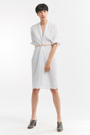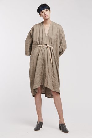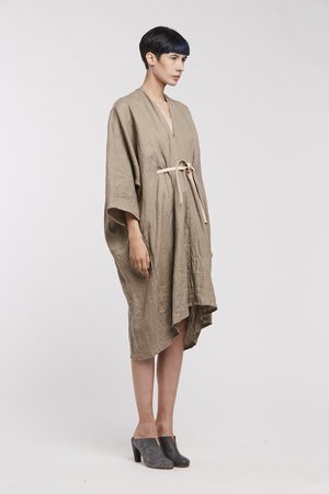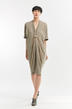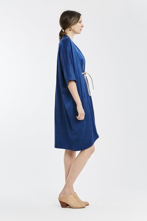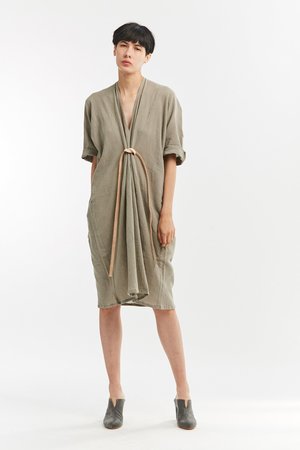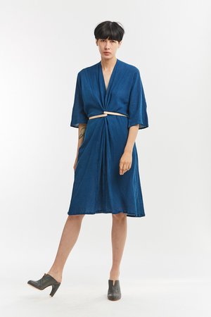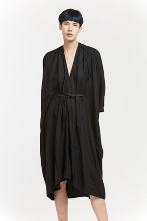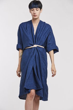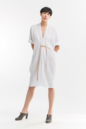 Miranda Bennett’s O’Keeffe Dress is a versatile one-and-done. It features a convertible waist with a leather belt, cocoon sleeves and a high/low hem.